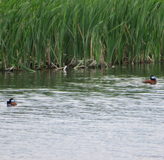The first Ruddy Duck I saw this year was in a picture I took. I was trying to take a picture of a Yellow-Headed Blackbird - and I never even knew the Ruddy Duck was there until I was looking at the pictures on my computer back at home!? Both the Yellow-Headed Blackbird and the Ruddy Duck were out of focus! (I'll include it below for a laugh).